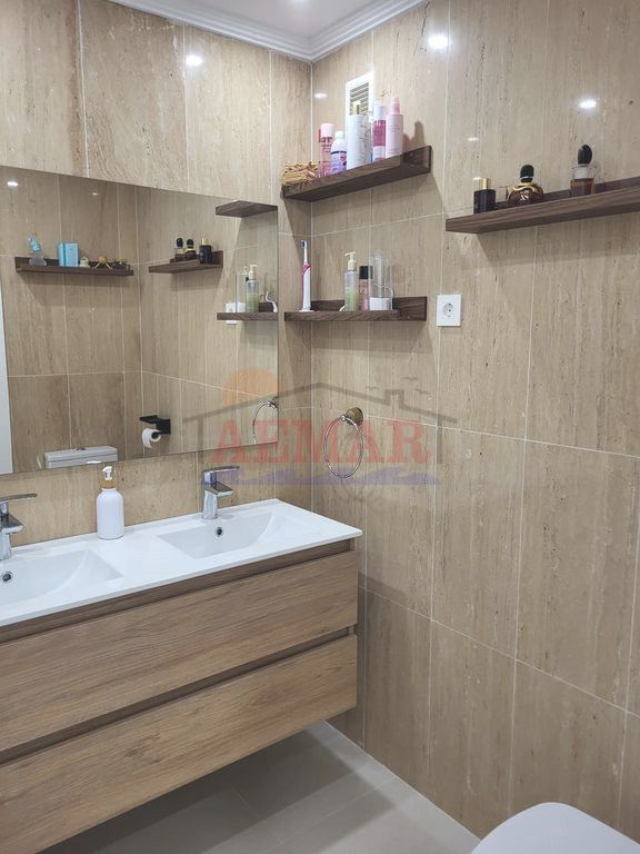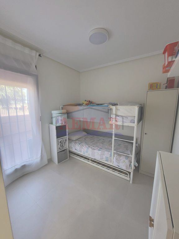 3 bedrooms semi-detached ground floor, 2 bathrooms, large terrace, communal pool, in front of golf course, garage and storage room, sea views, furnished.