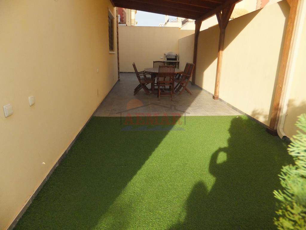 Dúplex semiadosado de 4 dormitorios, 2 baños, amplia parcela, solarium con vistas al mar, cerca de la playa, se vende amueblado.